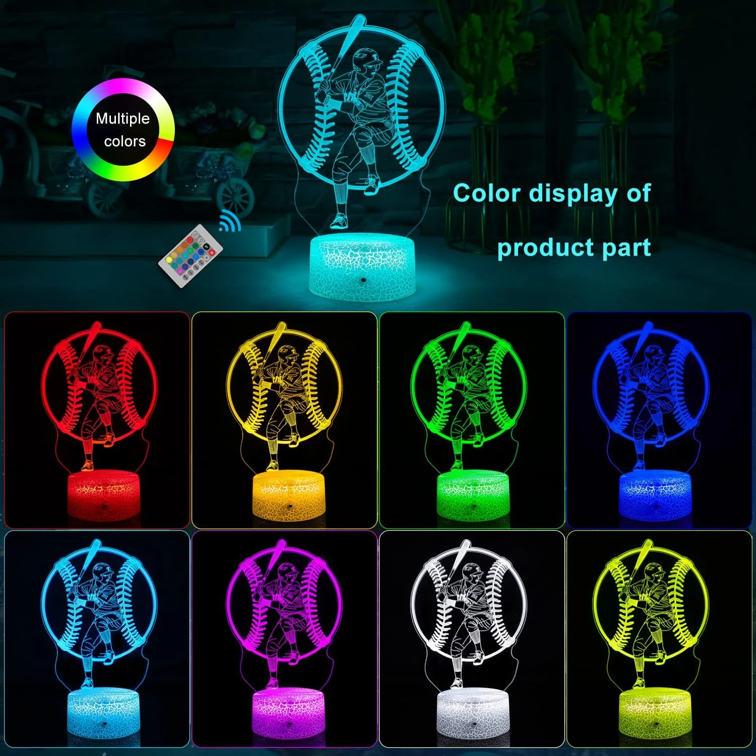 - 【Perfect Gifts】: The Baseball Player night lamp is colorful and adjustable, create a relaxed and warm environment when lighting. It is a good gift choice on birthday, Christmas, Valentines, and other Festival for kids man and adults, especially to Baseball Player sports fans.
