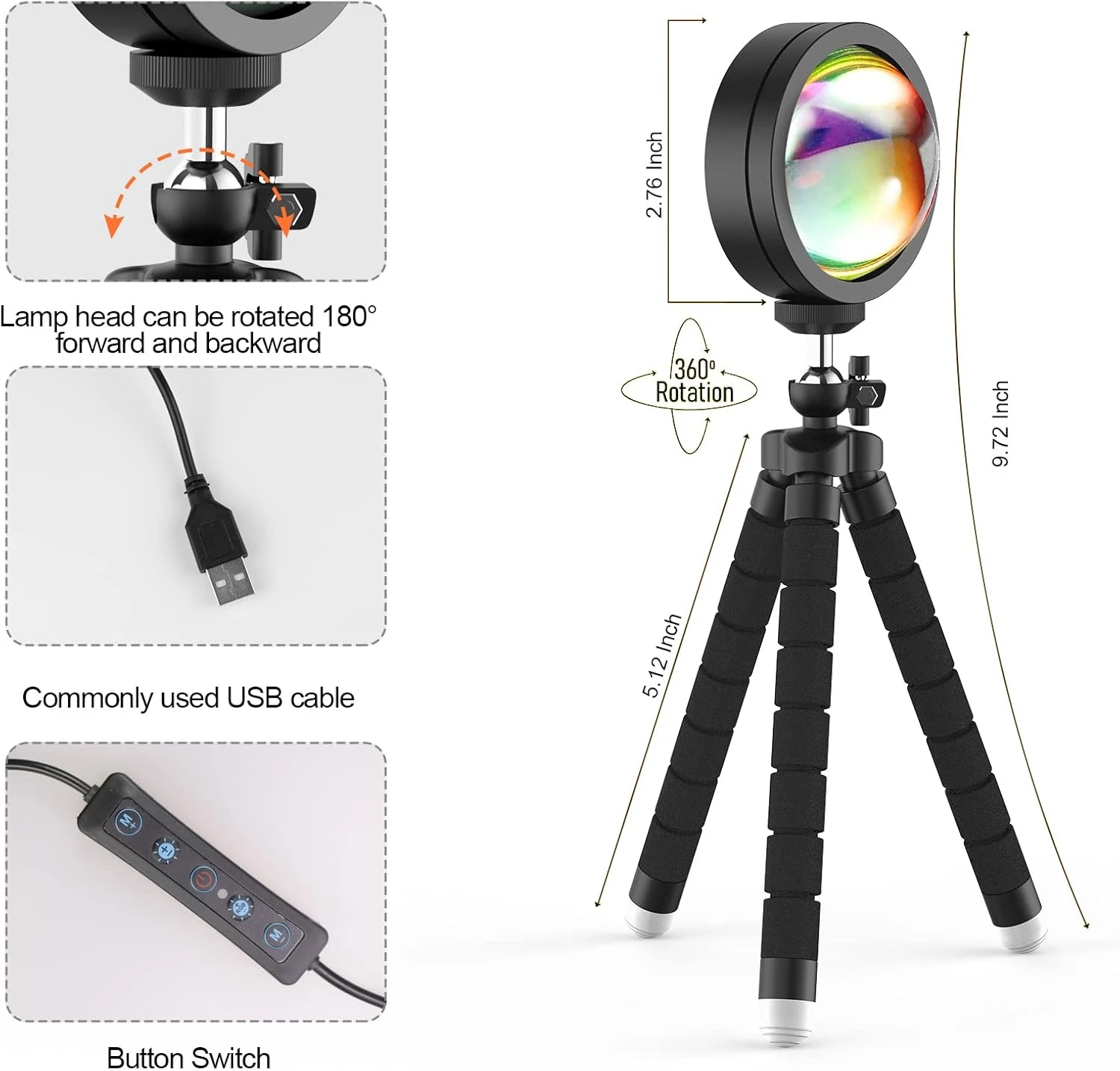 - 【Any Time Any Place to Take Pictures】 This sunset projection lamp can give you a romantic background, allowing you to take pictures beautifully at home, in a hotel, traveling, at school, or in a company, without waiting for the sunset time, find sunset background, giving you a wonderful visual impact.
