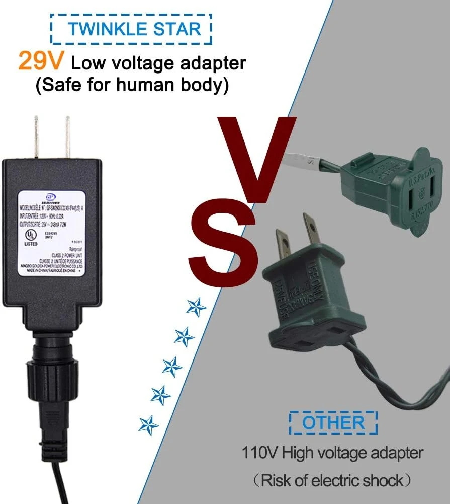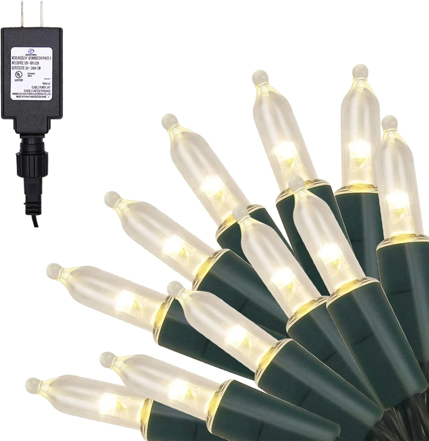 - Safe & IP44 Waterproof: The fairy lights with 29V low voltage adapter (UL Certificated) for safe use. These waterproof holiday lights are perfect to use on indoor and outdoor. Clear bulbs on a green wire making them ideal to decorate Christmas tree, outdoor trees, wreaths and garland.