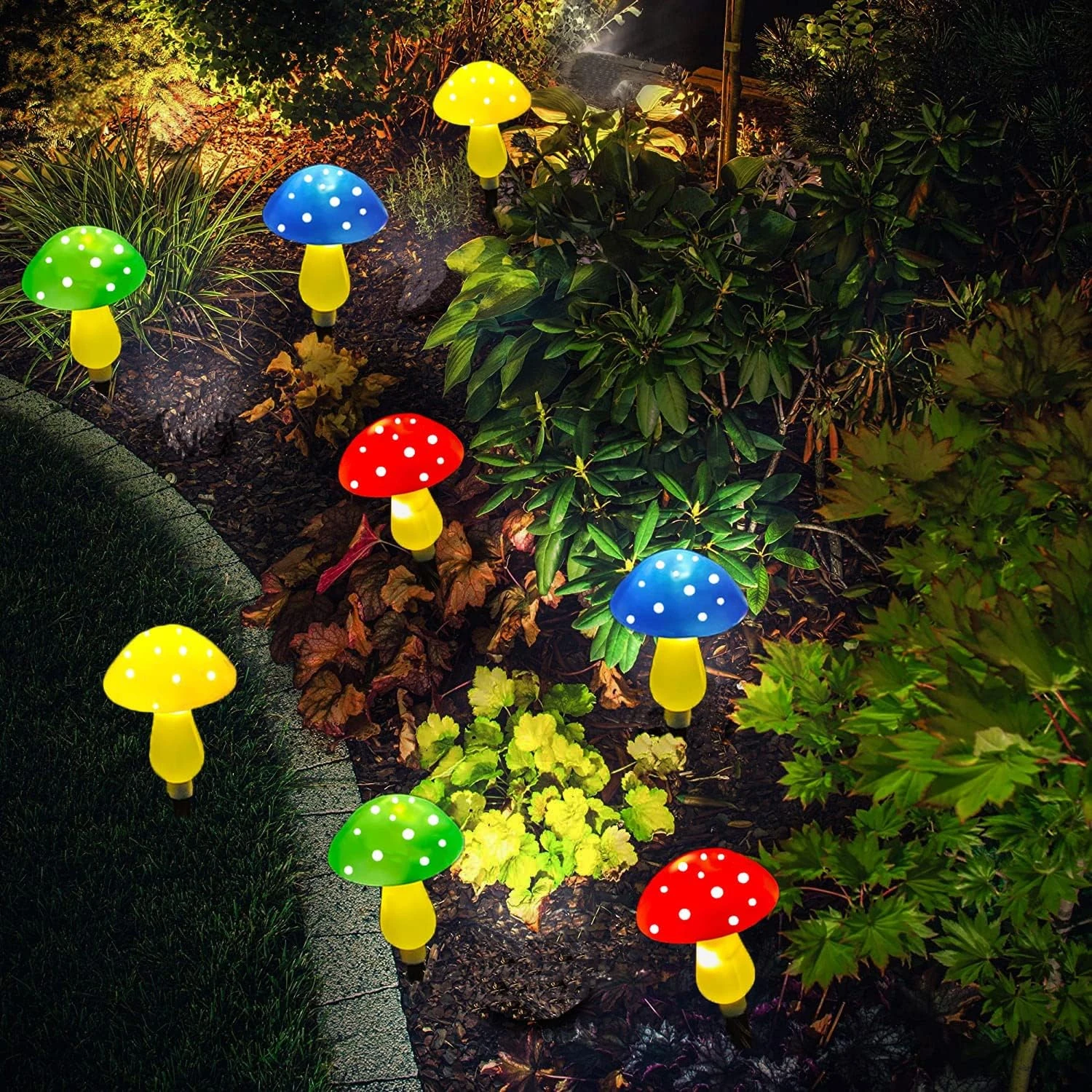 - Mushroom solar outdoor lights, cute mushroom shaped lamp, durable plastic, waterproof, energy-saving and eco-friendly. Unique solar mushroom decor garden lights bring nighttime comfort and elegance atmosphere to any outdoor area.