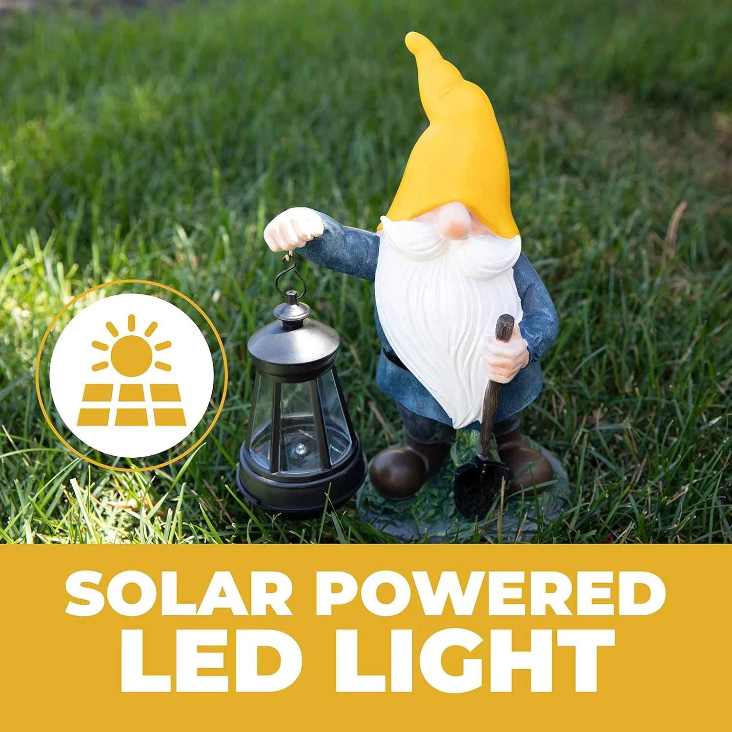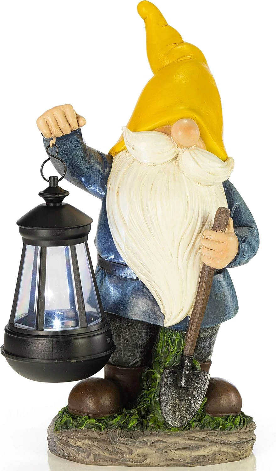 - Polyresin Construction and Rechargeable battery included. Our solar gnome garden statue is crafted from durable resin & glass to last year after year.