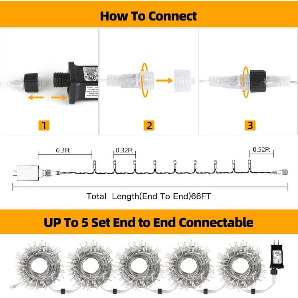 - [End to End Expandable]: Each set has an END-TO-END plug that allows up to 5 sets (330ft) connected together to cover larger areas. You can purchase more based on your needs.