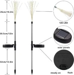 2 Pack Solar Garden Lights, 120 LED Solar Firework Lights Outdoor, Decorative Stake String Lights For Walkway Backyard Pathway Patio Christmas Wedding Party (2, Warm White)
