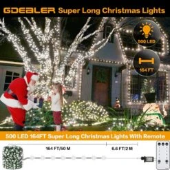 Flacchi Christmas Lights 82 Ft 200 LED Timer 8 Modes Low Voltage String Lights Indoor Outdoor White