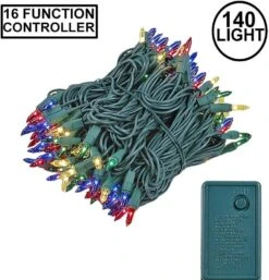 Novelty Lights 140 Light Chasing Patio Party Christmas Mini Light Set, Multi, Green Wire, 46.5′ Long