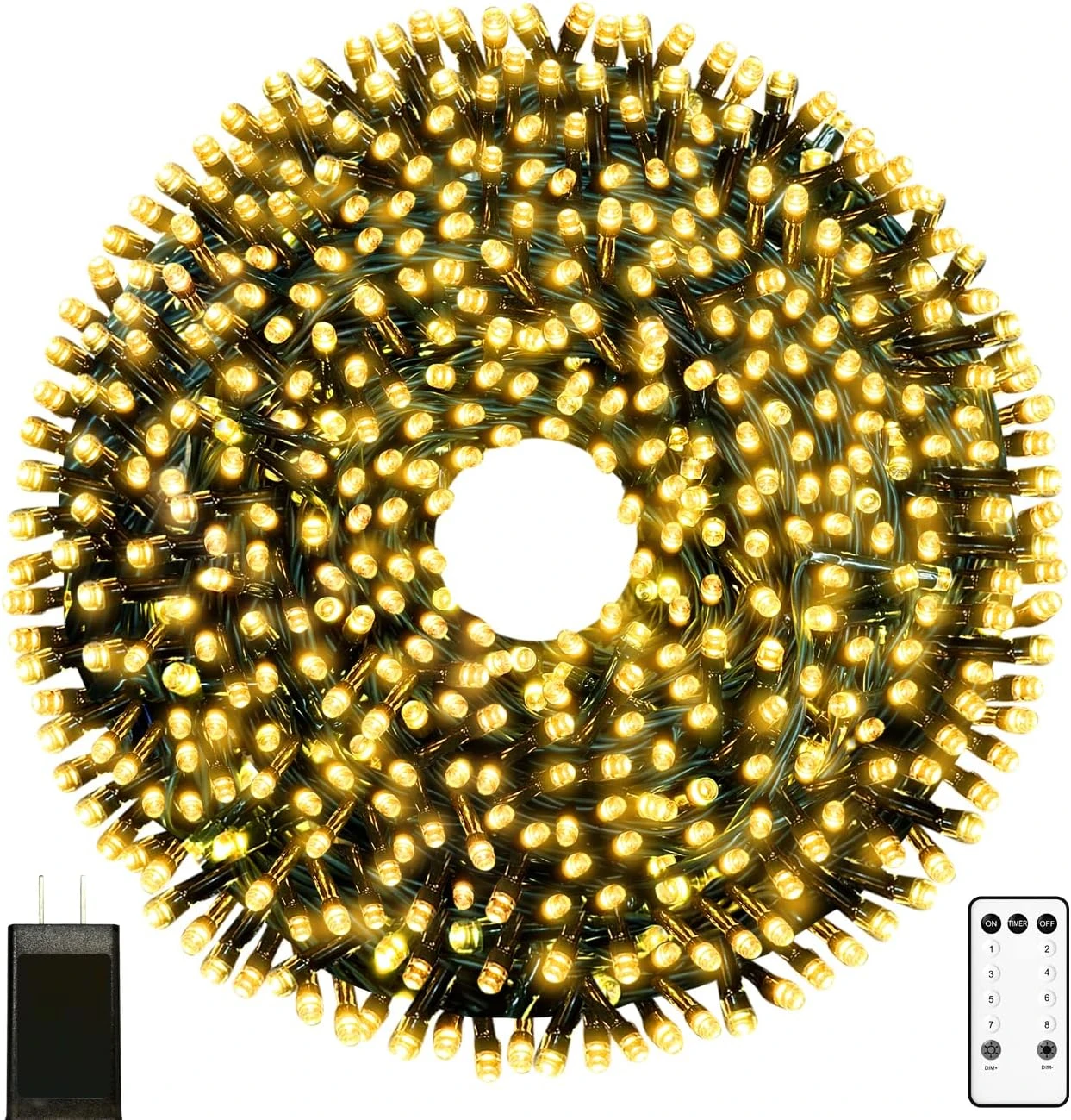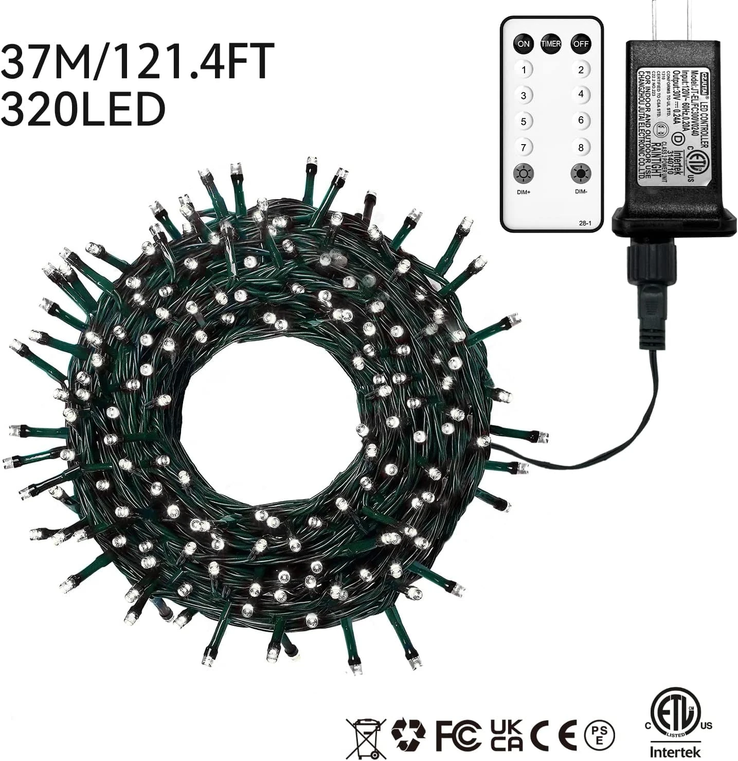 - 🎄【High Quality 320LED Christmas Decorations Lights with Remote Control】105ft Light String with 320 LED Beads, 16.4ft Lead Length, 122ft Total Length, 0.3ft Bulb Spacing. With a remote control, it can realize long-distance remote control selection of 8 modes, dimming function, and timing function. The remote control allows you to adjust the flash mode to your liking while sitting on the couch.