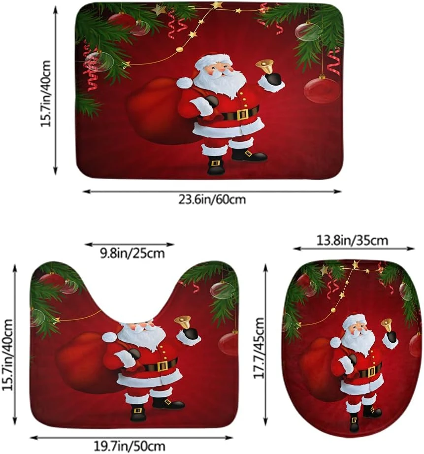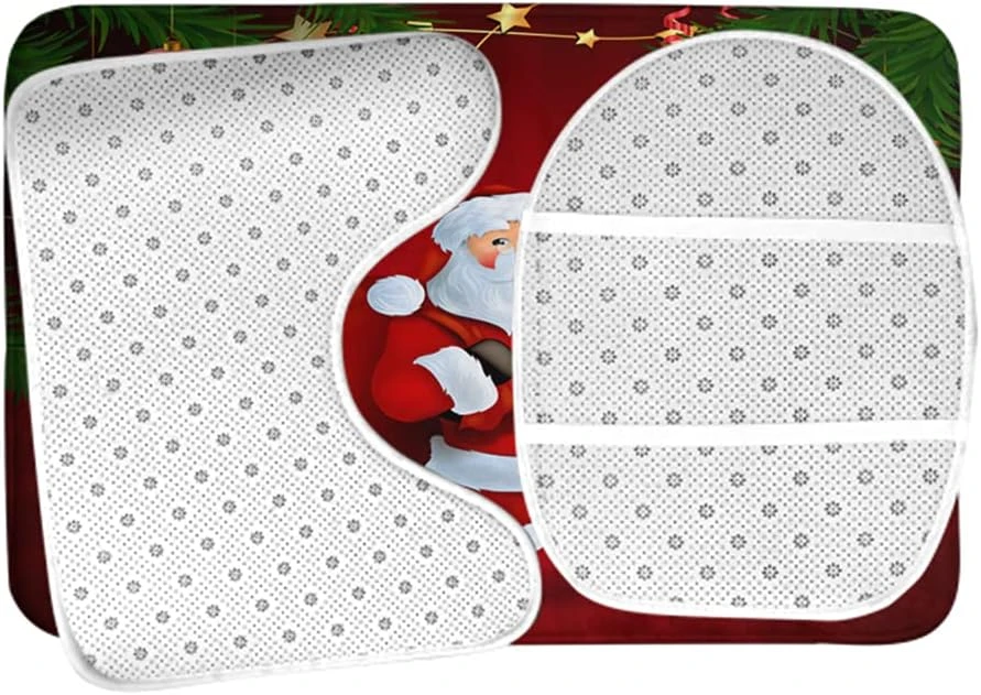 - Material: Santa Claus Bath carpet is made of polyester, flannel fabric, environmentally friendly, thick and comfortable, strong water absorption, not easy to deform. The bottom non-woven point plastic is used for non-slip and does not hurt the floor.