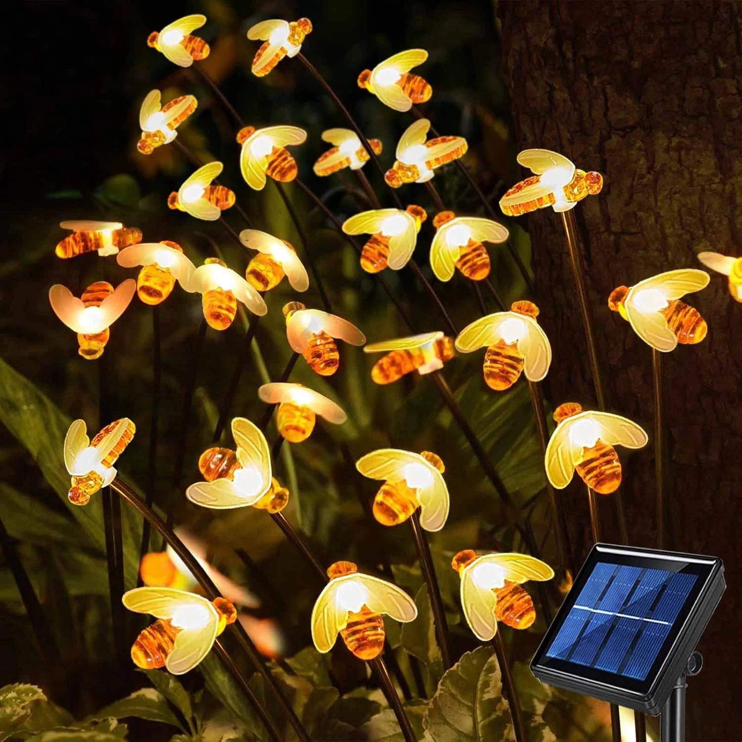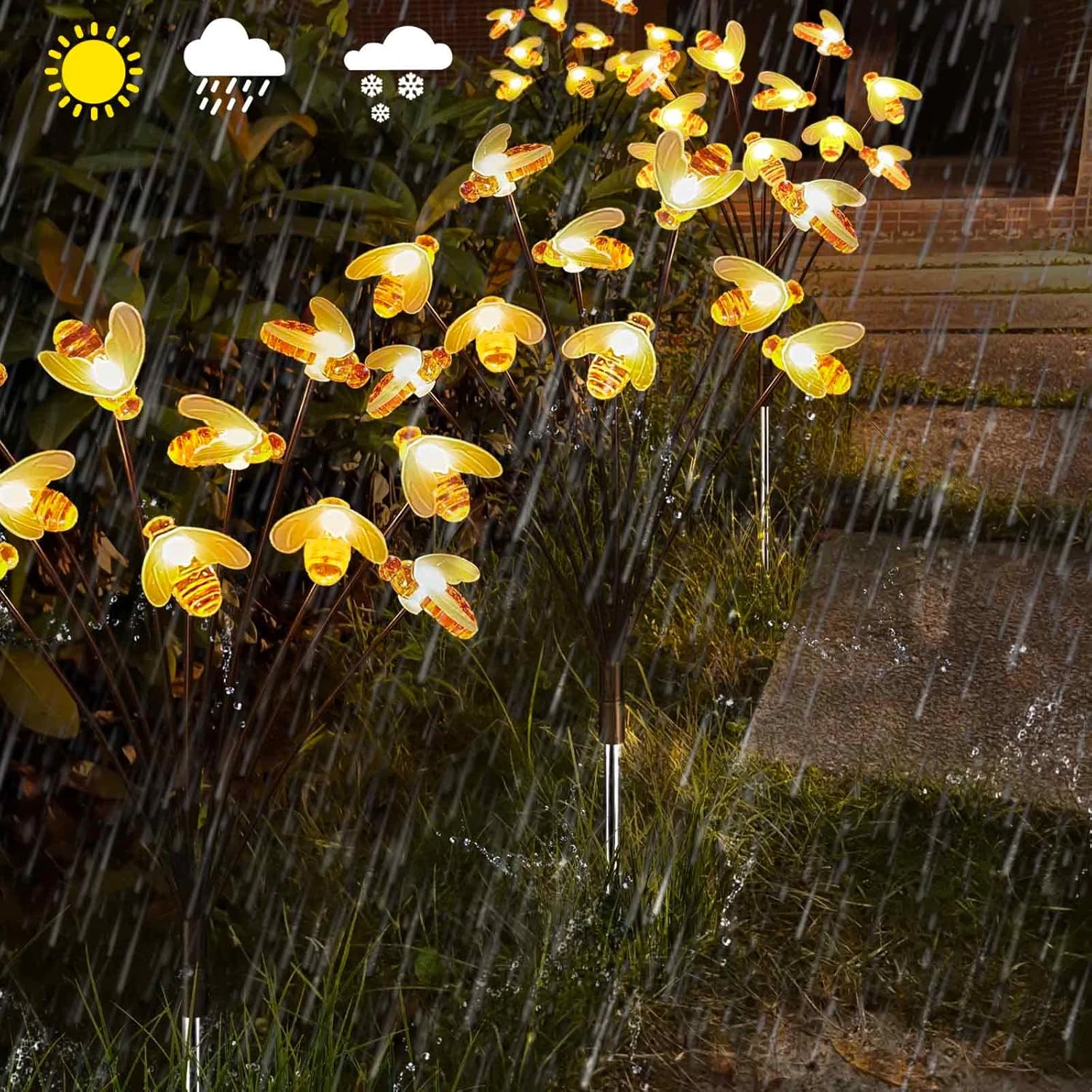 - 【Perfect Garden Decor】These solar garden lights are ideal for decorating your garden, yard, patio, pathway, lawn, walkway, fence or flowerbeds. Very unique housewarming gifts for your family and friends and who love gardening or outdoor activities. The warm white lighting and cute bee fireflies will create a romantic and cozy ambiance for your home.