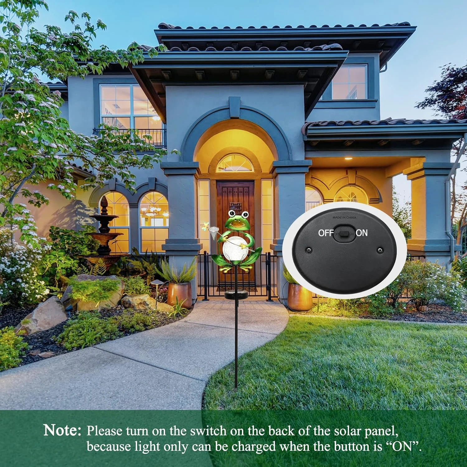 - Unique Frog Shape Design: Adorable frog holding a net to catch dragonfly, plus the warm white solar cracked glass globe ball light. Whether it is day or night, it can make your garden more vivid and interesting.
