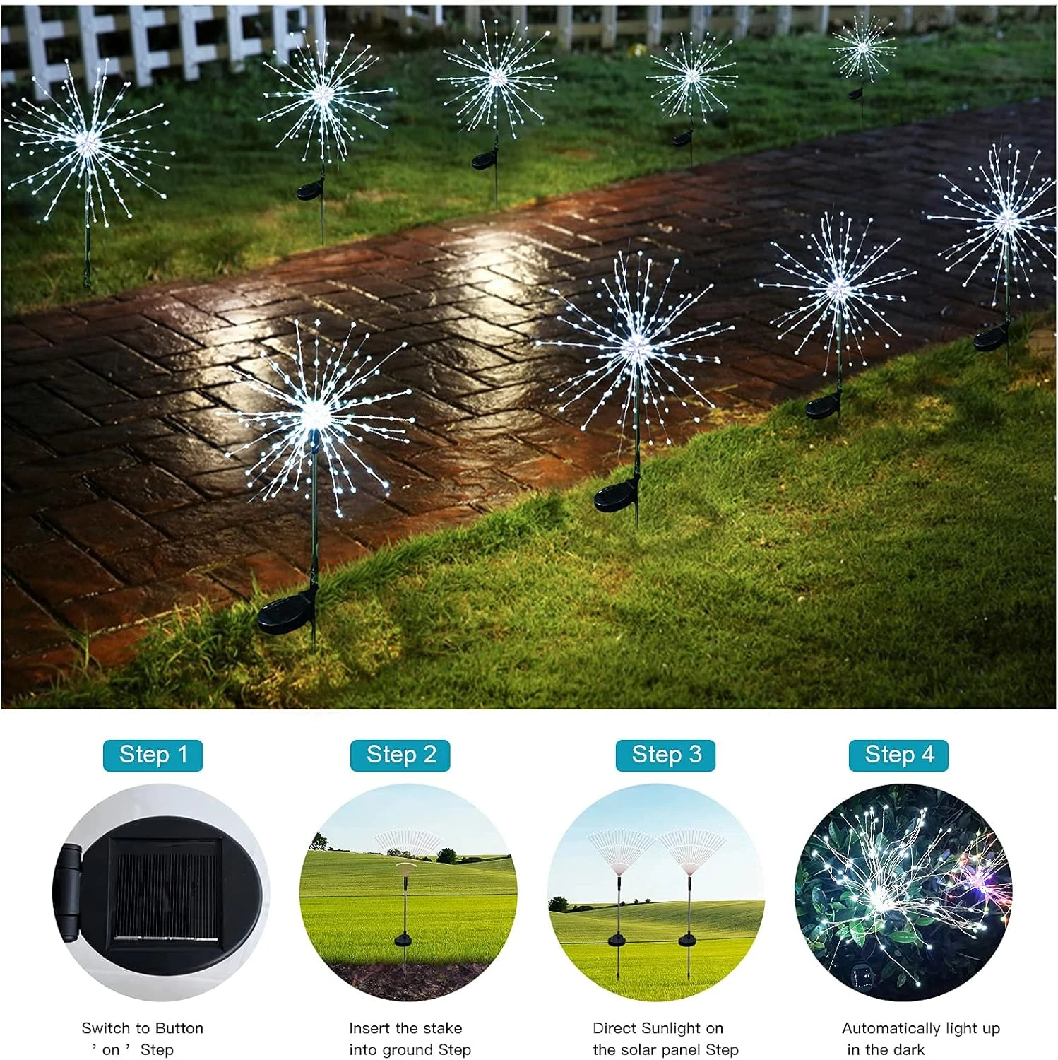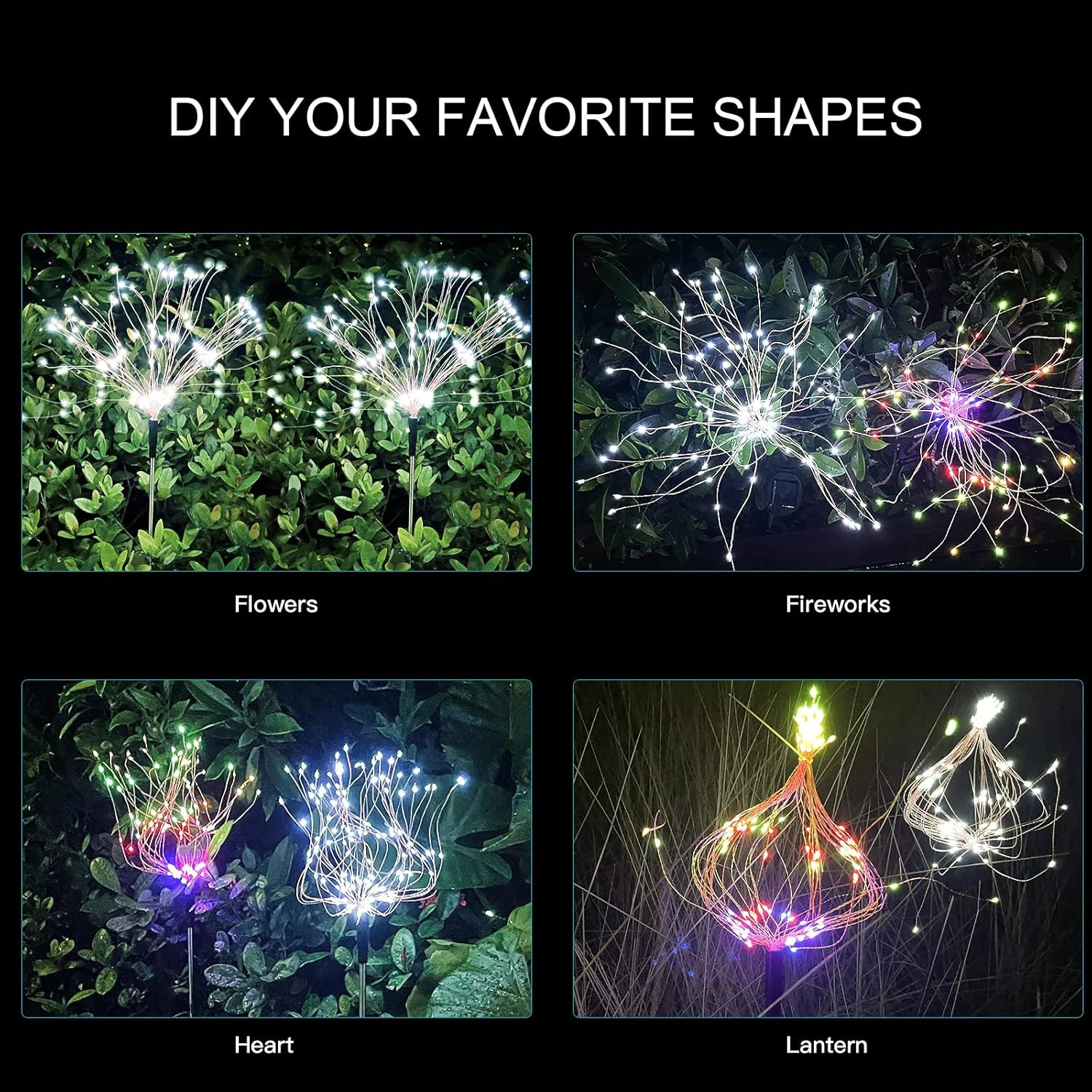 - 【Creative Diy Solar Powered Lights】You can DIY your favorite shapes according to your mood, such as flowers, trees, fireworks, hearts, spirals, spheres, etc. These solar decorative yard lights add a sense of novelty and romance. Great decoration choice for Christmas
