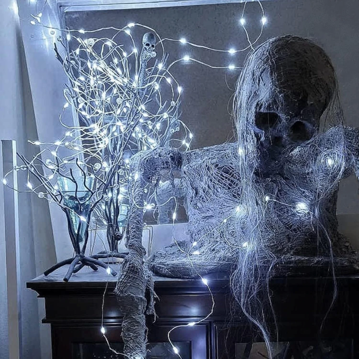 - Brilliant Outdoor Decor: 100 LED starry-style fairy lights with white light accent your space with a unique, inviting glow. 33ft length is perfect to put around a garden or porch railing.They were the finishing touch for a back yard bbq, party, wreath, fence, patio, pools, bush, holiday, indoor, outdoor. In the dark, the wire fades to invisible, leaving only the fairy lights, create a classy and romantic atmosphere.