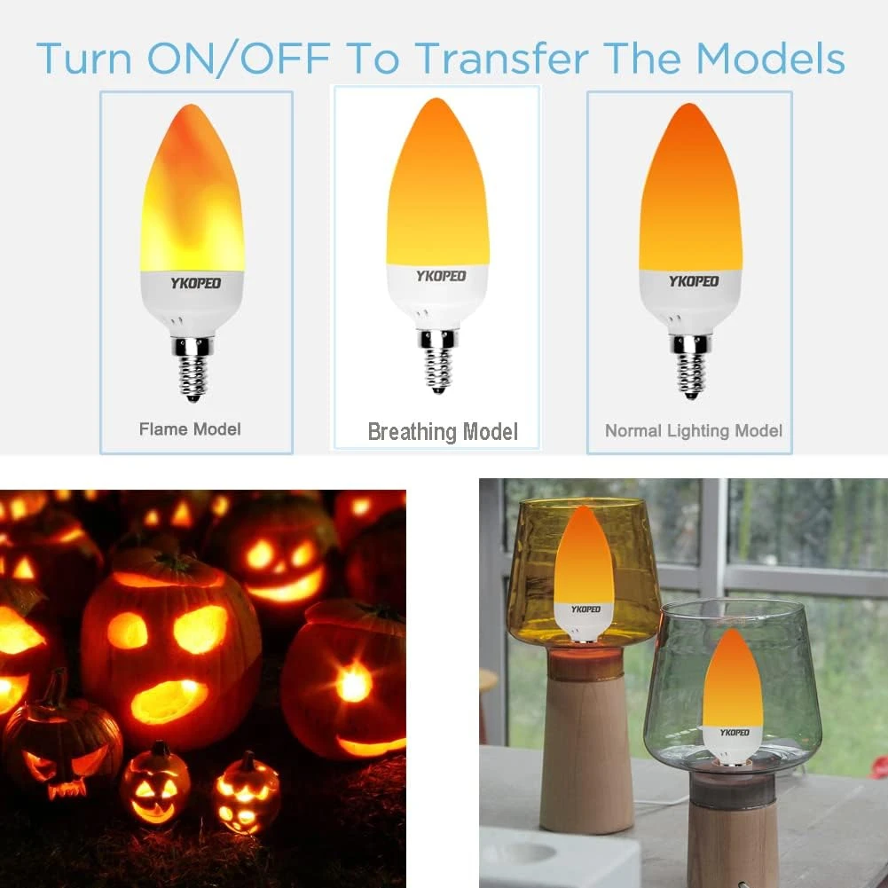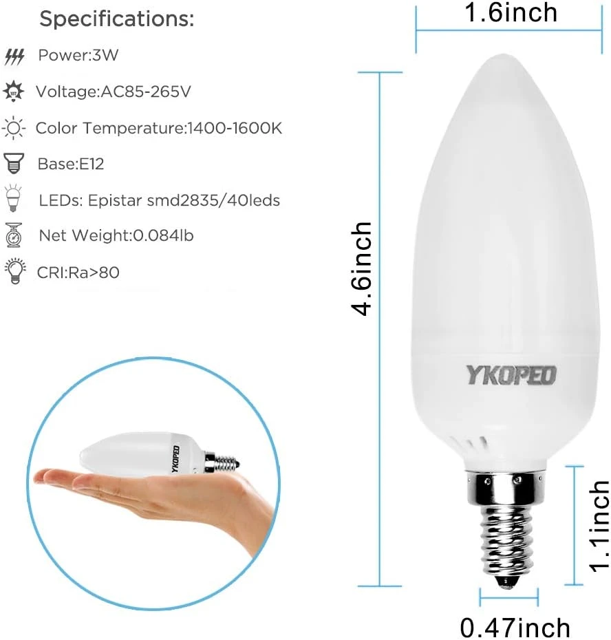 - Exquisite Workmanship: YKOPEO’s E12 Candelabra base was solidified by soldering at the base of the flame flicker candle bulb. Most flame bulbs on the market only used a metal screw. This screw literally fell out of the plastic hole and that lead to the bulb won’t work.