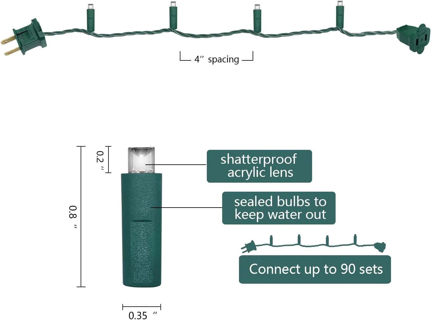 - Perfect for outdoor lighting decorations and has tail end female connector,light strand is connectable end to end and can be connected up to 45 strings for a total of 765 feet on one plug