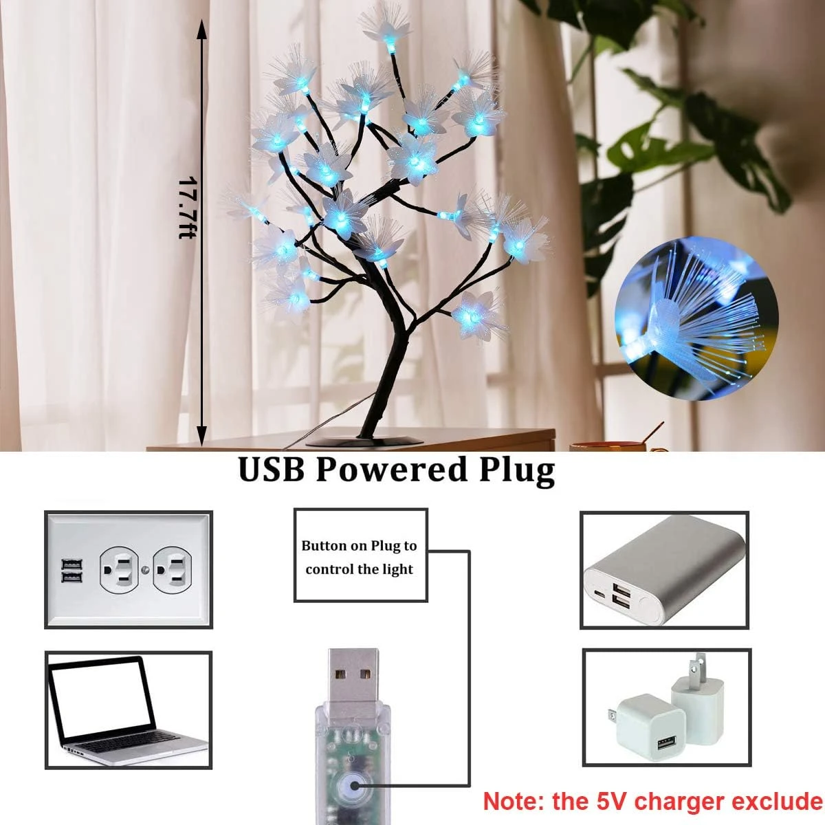 - 【Adjustable branches can be DIY for customized shape】Overall height: 18”; 24 LED lights, RGB fiber optic lights with remote control; Artificial twig branch with 24 RGB lamp. You can bend the branches and the tree into any shape or more natural tree shape as you like. Build up exclusive tree light for yourself.