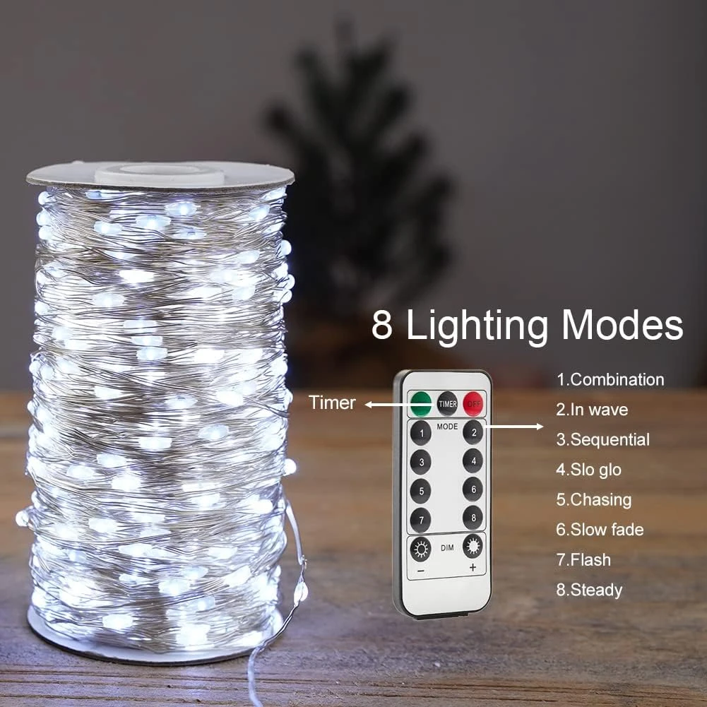 - 【Timer & 8 Lighting Modes】 The led fairy lights can the controlled by remote, you can switch your favorite lighting mode and brightness at will. There are 10 brightness and 8 different lighting modes for you to choose( (combination, in waves, sequential, Slogs, chasing, slow fade, twinkle, steady on). After turning on the LED copper string lights, click the timing button on the remote control, and it will automatically turn off after the relative time(6 hours on/18 hours off).